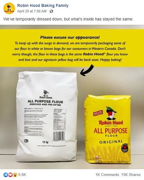 新包裝的面粉將在近幾周上架,